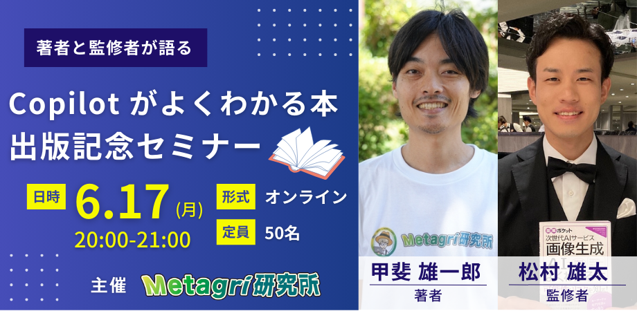 2024年6月17日に発売される書籍「図解ポケット ビジネスを最適化!Copilotがよくわかる本」の出版を記念し、著者と監修者が書籍の内容や制作秘話を語るオンラインセミナーを開催します。